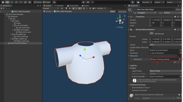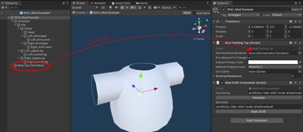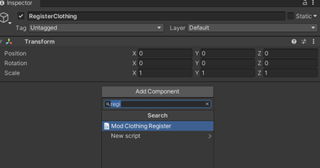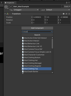 With your prefab opened add a new component to the parent object called “Mod Clothing Top”