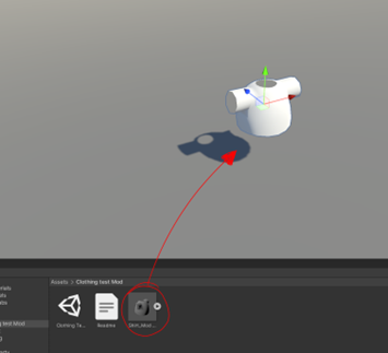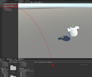 We now want to prefab our clothes model, to do this we reverse the last step. Dragging our object from the scene Hierarchy into our project window, it may be best to keep your prefabs in their own folder.